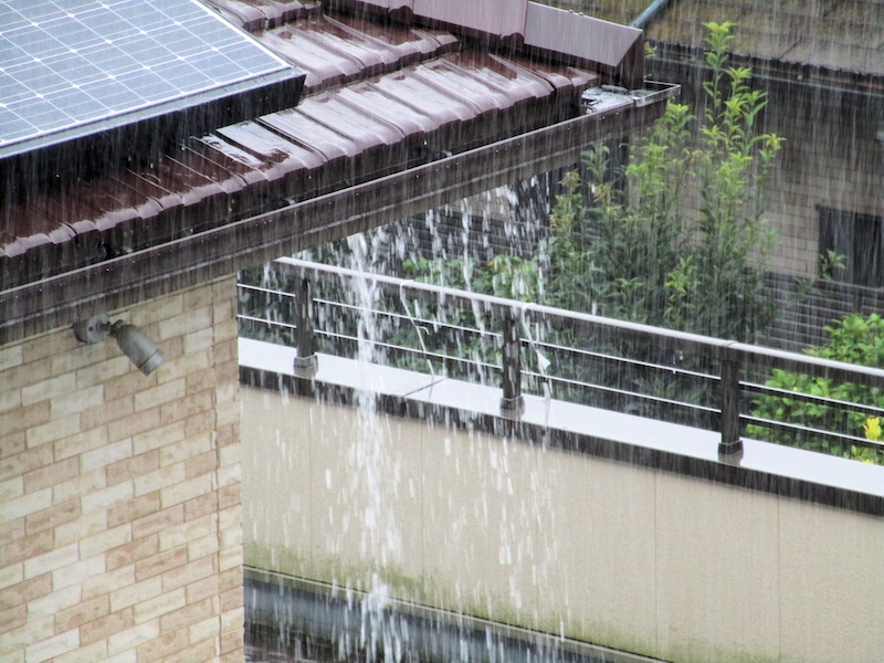 高いところから打ちつける雨音はとても大きな音を立てます。